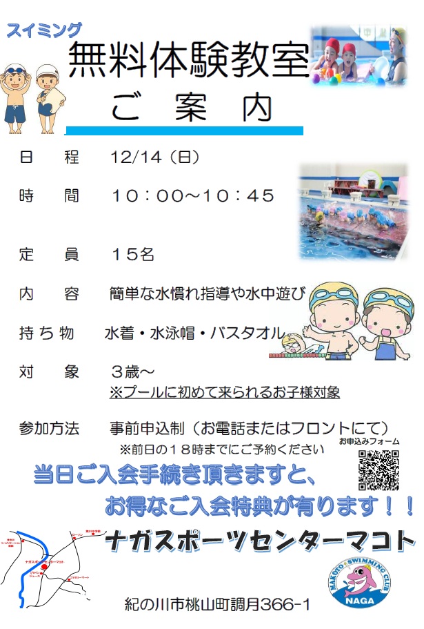 対象:〜2歳児 3歳児までが対象で、お母さんと一緒にプールに入り、水慣れから始めます。