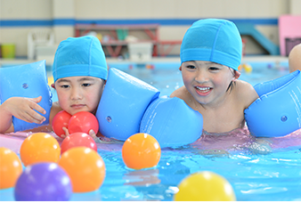 対象:〜3歳児 3歳児までが対象で、お母さんと一緒にプールに入り、水慣れから始めます。
