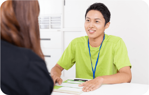 はじめに、お客さまが解消したいと感じているお悩みや、 どんなプログラムに興味を持っていらっしゃるか、お尋ねいたします。 それをもとにお客さまにあったプログラムや運動方法をご提案いたします。
