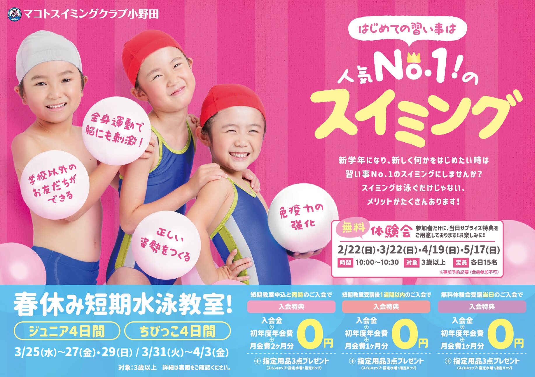 対象:3歳児〜 3歳児からのお子さんが対象で4泳法習得を目標にするクラスです。(スクールバス有り)
