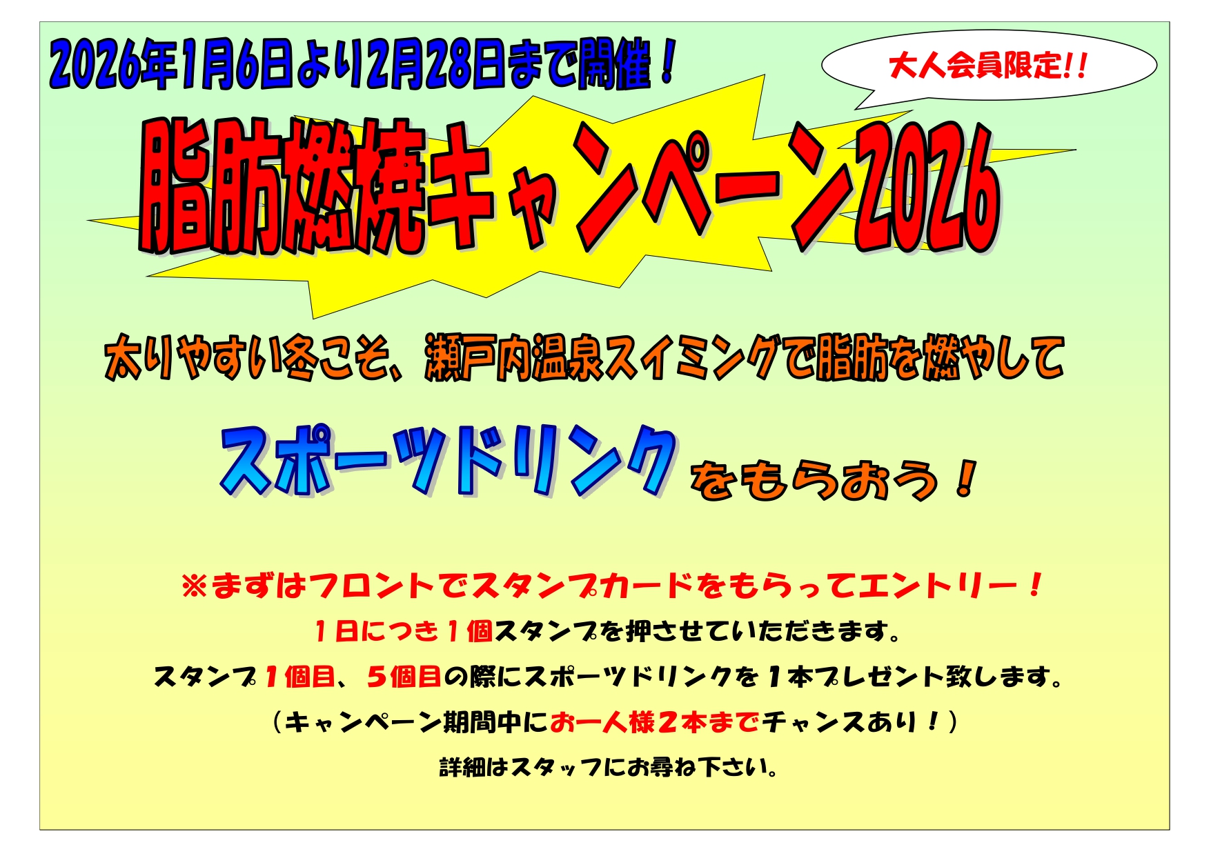 ゆったり泳いで 清正の湯で リラックス おとな クラス 詳細はこちら 成人クラス 18歳以上で、水が怖い、泳げないはもちろん、泳ぎの基礎からクロール・背泳ぎ・バタフライ・平泳ぎまで丁寧に段階をおって指導していきます。 初めて水泳クラス 泳げない人、個々のレベルに合わせて無理なく、多彩なプログラムを提供していきます。「泳ぎに挑戦したい」中高年の方にお勧めです。 泳法レッスンクラス 4泳法を習得した人が、より高度なテクニックを習得したい方にお勧めです。 ウォーキングクラス 運動不足の方、これから運動を始めたい方、腰痛・膝痛の方も無理なくご参加いただけるコースです。「何か始めたいけど、陸上の運動はちょっと」という方にお勧めです。終わった後に、清正の湯でリラックスできます。 平日お昼の ウォーキングクラス 運動不足の方、これから運動を始めたい方、腰痛・膝痛の方も無理なくご参加いただけるコースです。「何か始めたいけど、陸上の運動はちょっと」という方にお勧めです。